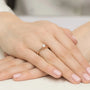 The Princess Sakrami lab-grown diamond ring is designed for those who want to combine elegance and awareness. Its refined design highlights every detail: the 0.40 ct round center diamond is framed by a delicate band of lab-grown diamonds that amplify its light and meaning.