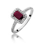 L’eleganza del Rubino incontra la brillantezza dei Diamanti in un anello in Oro 14kt dal fascino senza tempo. Un gioiello prezioso che dona luce e stile a ogni momento.
